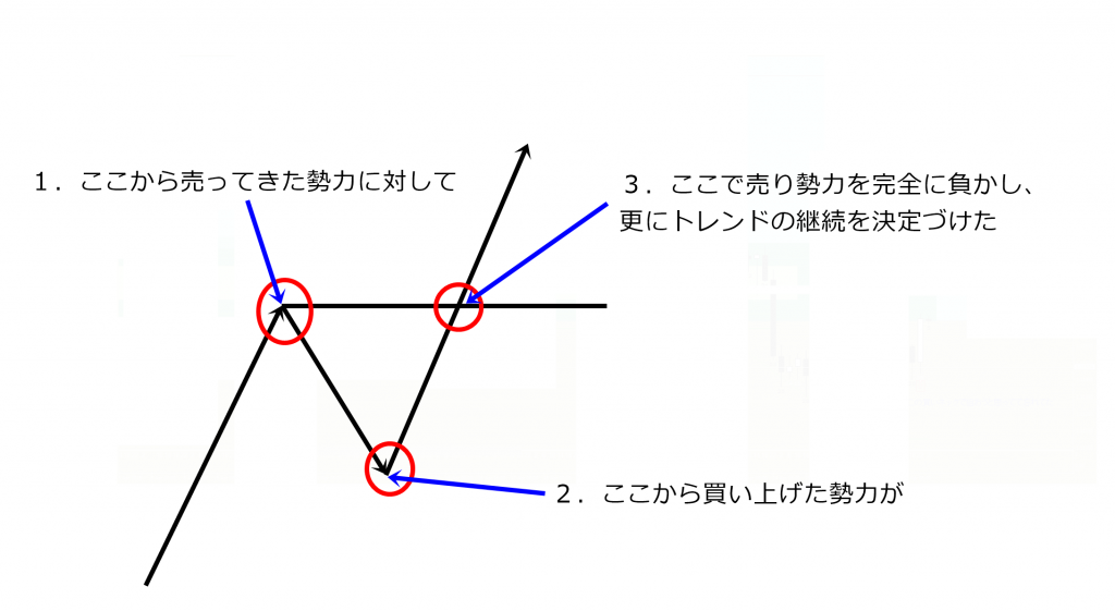 なぜ重要な高値安値がキーポイントとなりえるのか?その答えは戻り安値(戻り高値)試しに行った逆の勢力を、打ち負かすことが出来る買い(もしくは売り)の勢力が存在し得る場所であるからです。